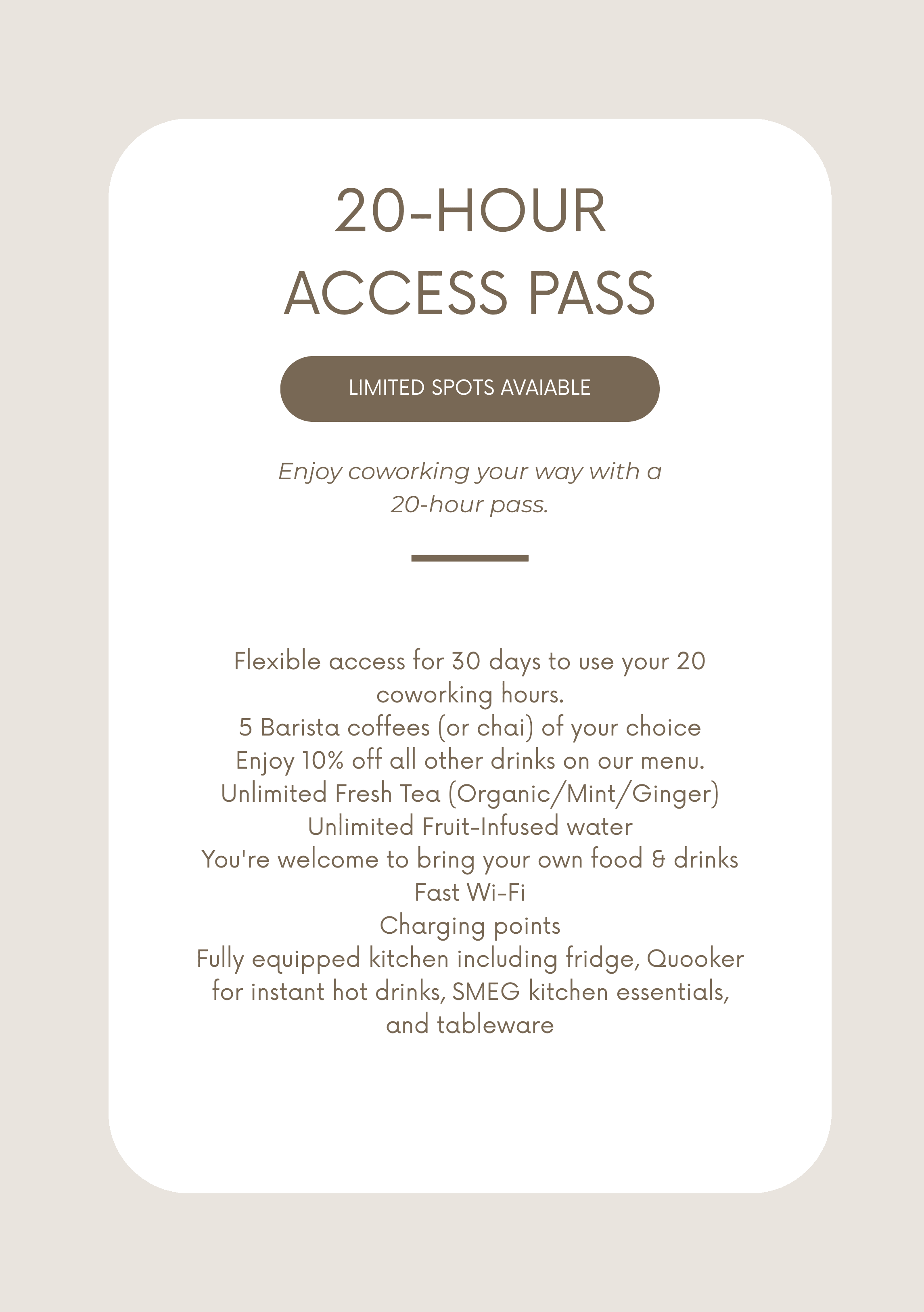 Bij veel werkplekken zit je vast aan een maandelijks abonnement. Bij ons niet! Bij Table & Chairs bepaal jij hoe je werkt — of je nu een uurtje komt zitten of de hele maand wilt blijven.