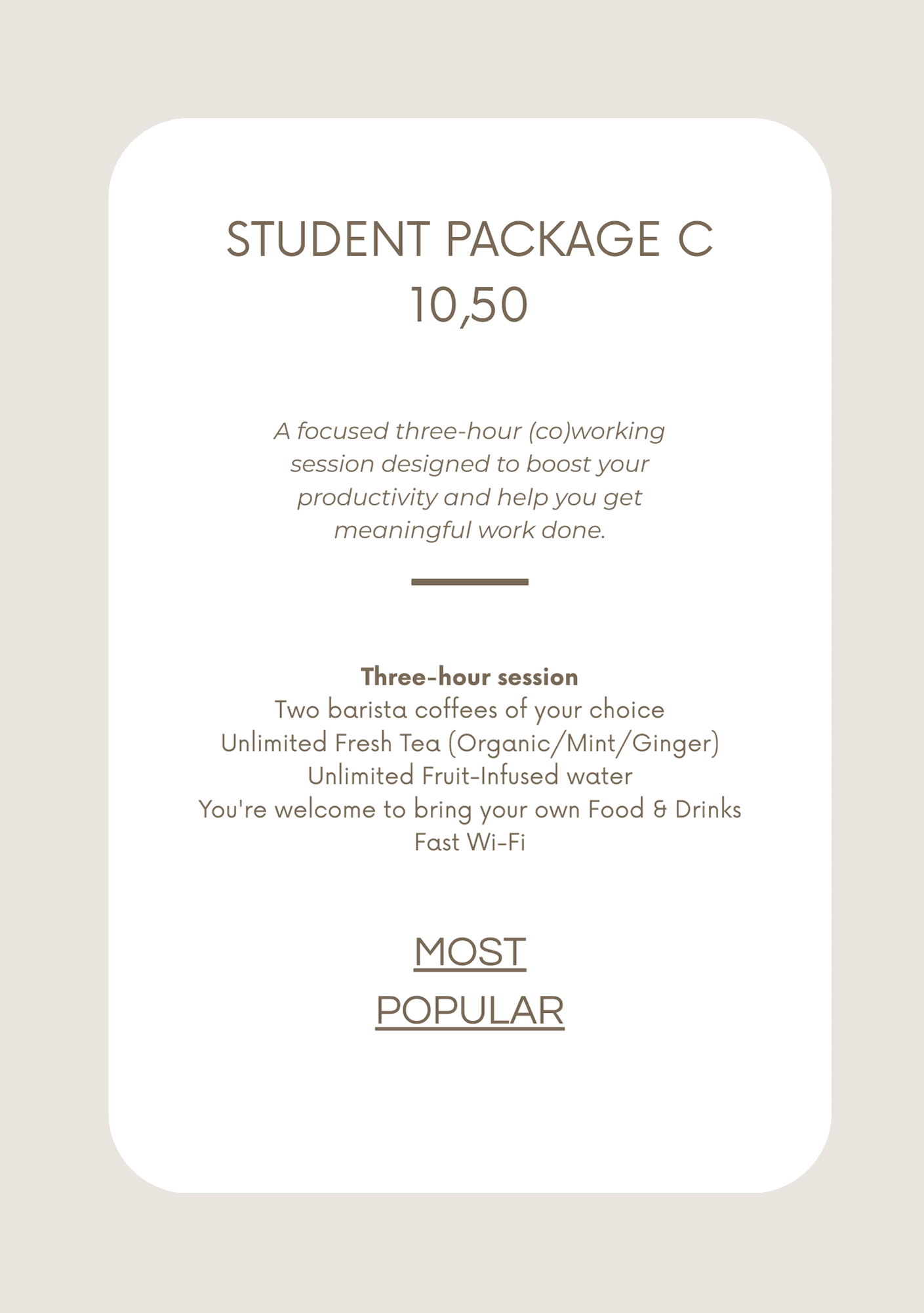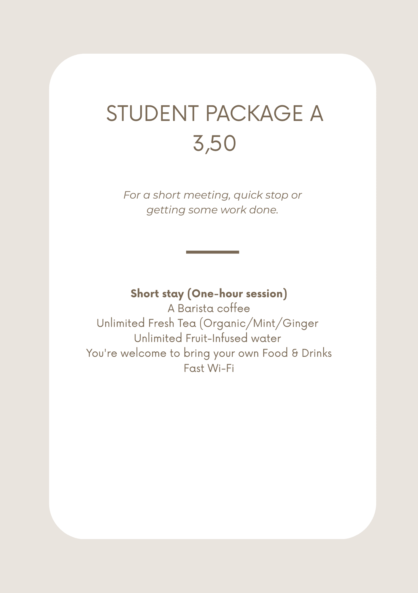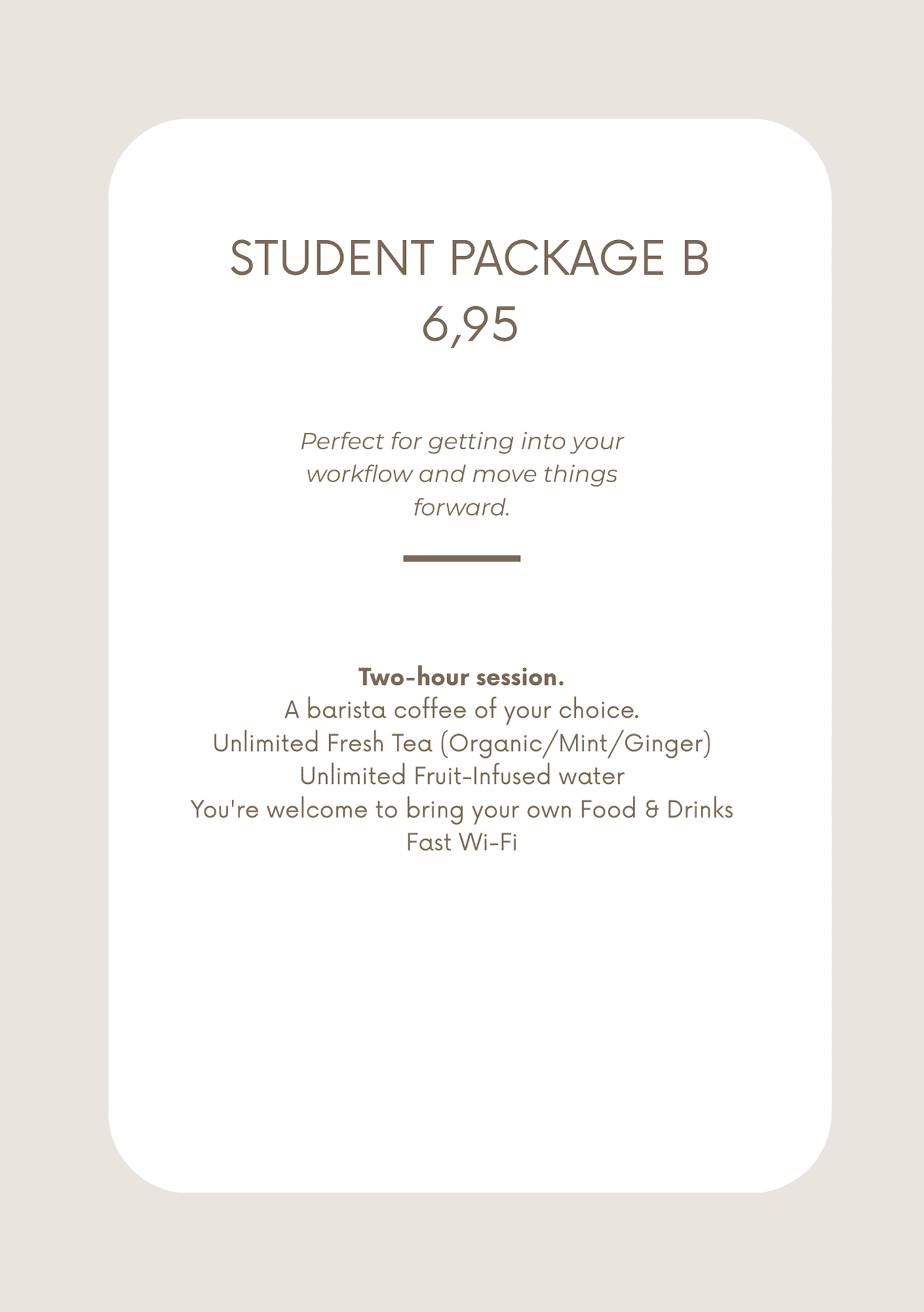 Looking for a comfortable place to study? As a student, sometimes all you need is a calm spot, your laptop and free wifi. TABLE & CHAIRS is designed exactly for that. No pressure to order lunch, no awkward looks if you stay a little longer. You’re welcome to settle in for as long as you like. Choose the study package that suits you needs and bring your own lunch. Whether that’s a fresh sandwich from the bakery or something from home. Stay as long as you need, work at your own project and simply pay afterward. Try it out and discover your new favorite study spot.